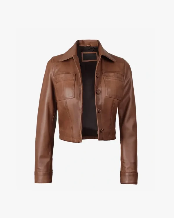 Womens Cropped Cognac Leather Jacket