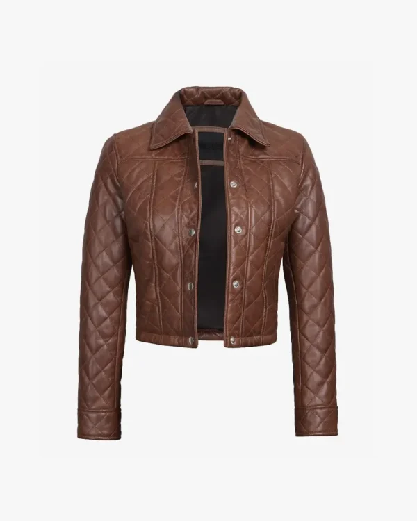 Womens Quilted Cropped Cognac Leather Jacket