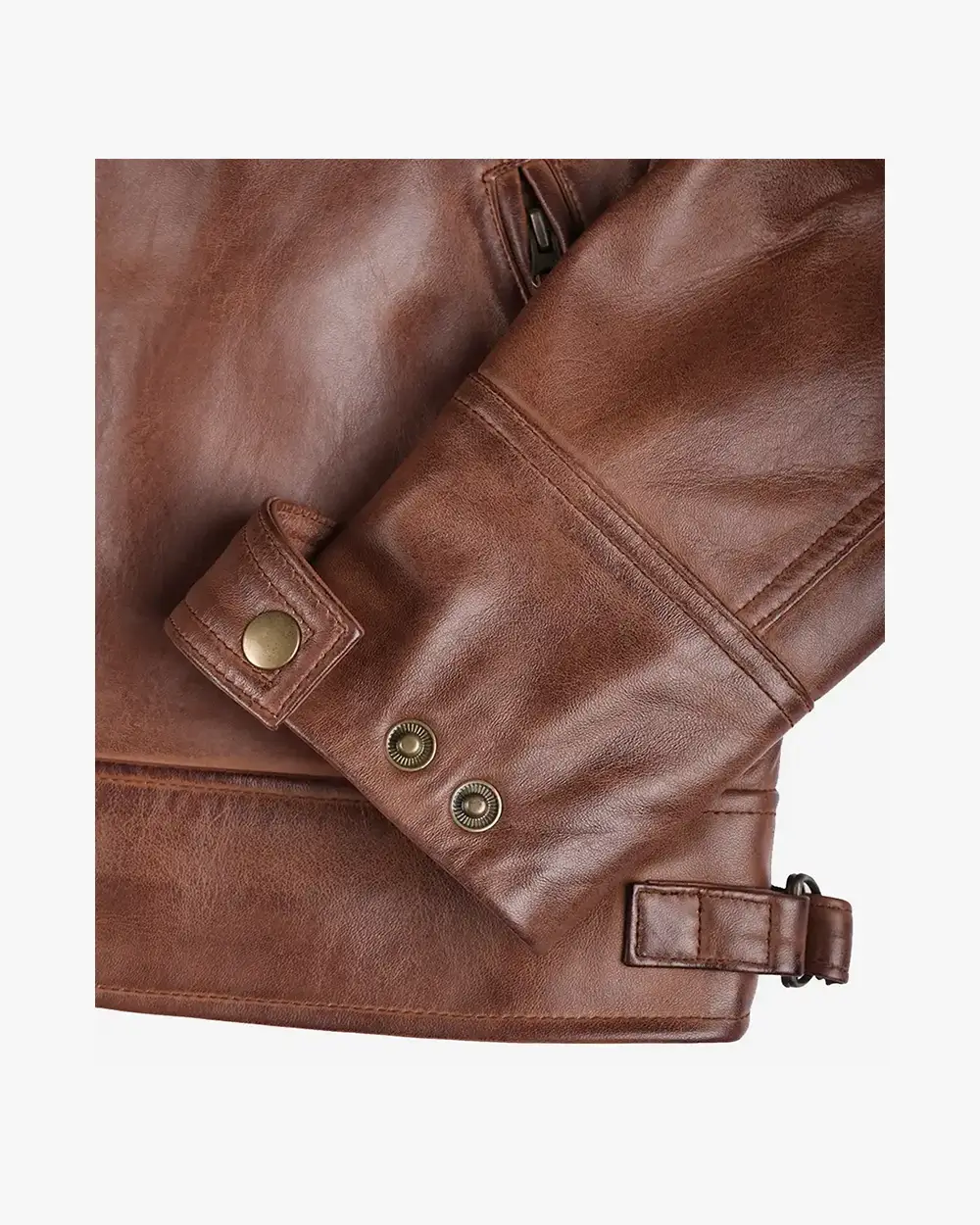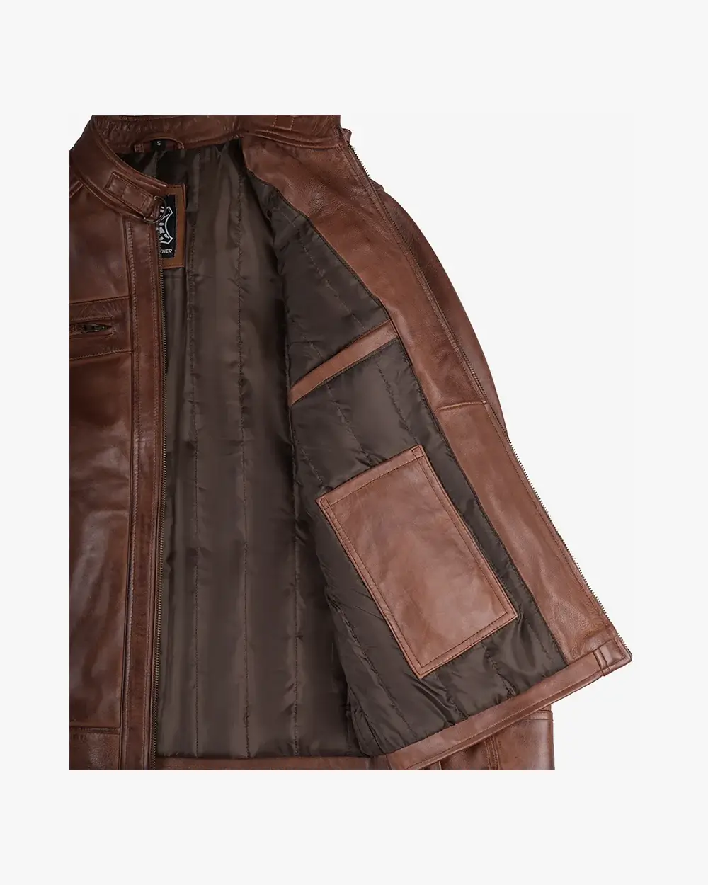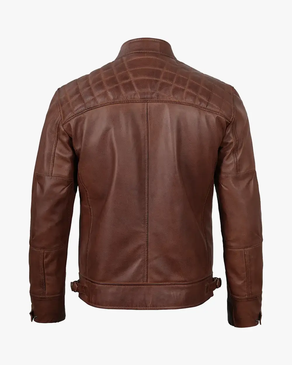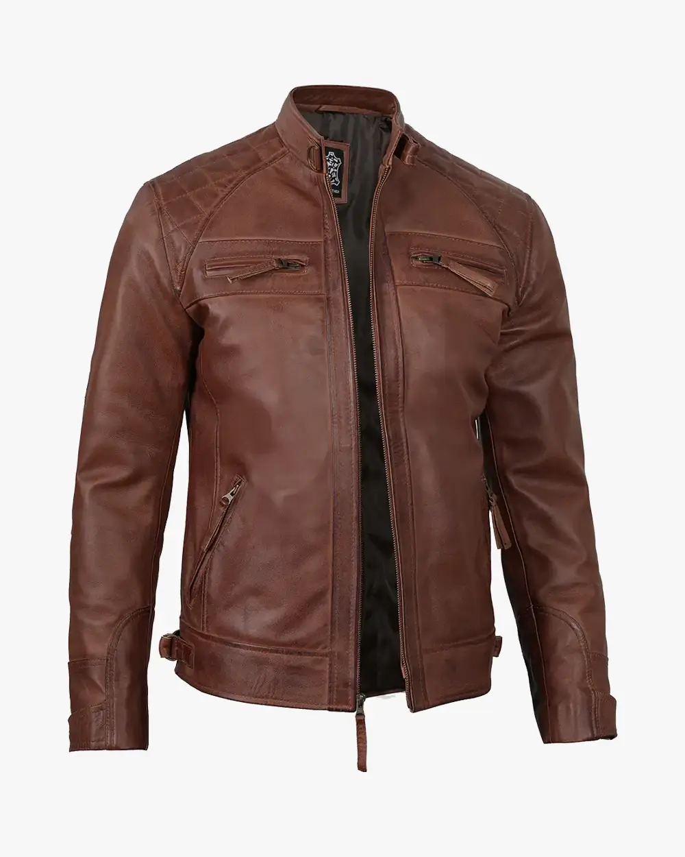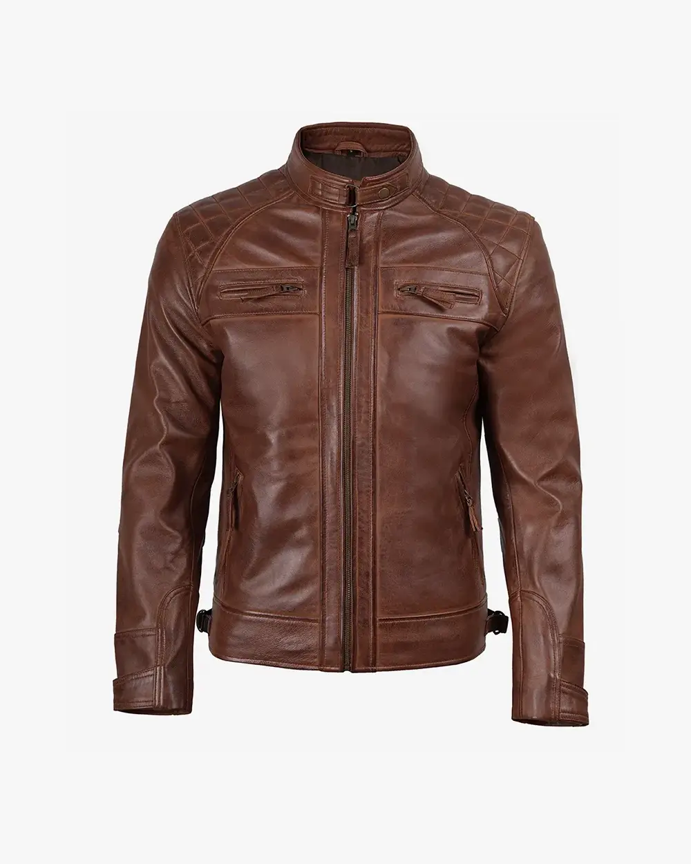 Men’s Biker Style Cognac Leather Jacket – Quilted Shoulder